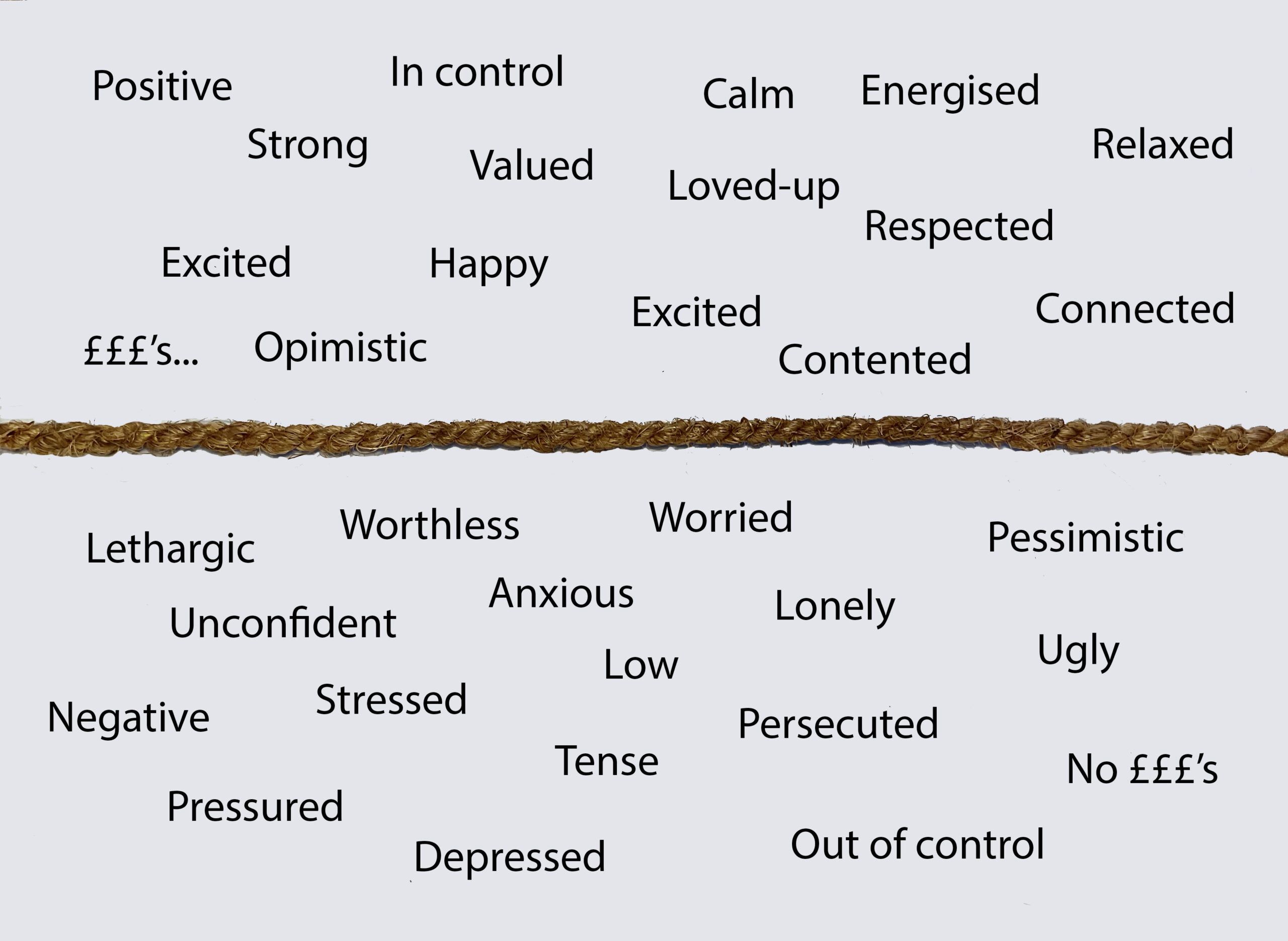Life fluctuates and we can dip above and below the line regularly to varying degrees. The key is not to dwell below the line and to find things that help us to get back above the line as fast as possible.